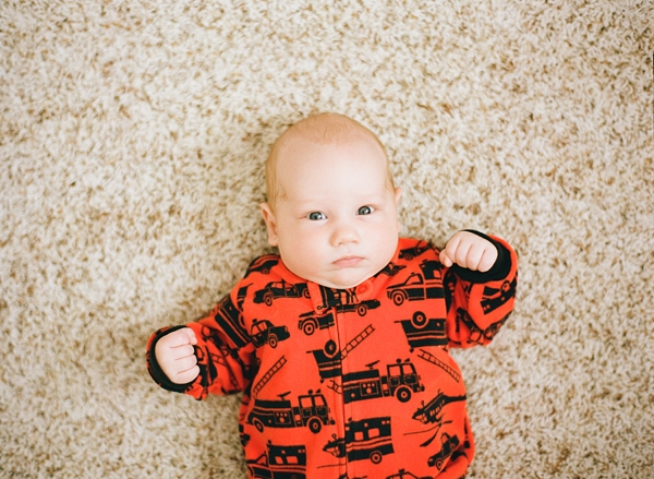 My not-so-little man turned three months old yesterday. He is nearly 16 lbs now, wearing 6-month pants, 9-month onesies and size 3 diapers. I’m getting quite the arm workout these days! He is more fun each day – smiling, laughing and responding to us more and more. He has quite the sensitive side too – Deven has accidentally scared him to tears a few times! haha. He holds his head up and likes to sit up with just a little help from us.